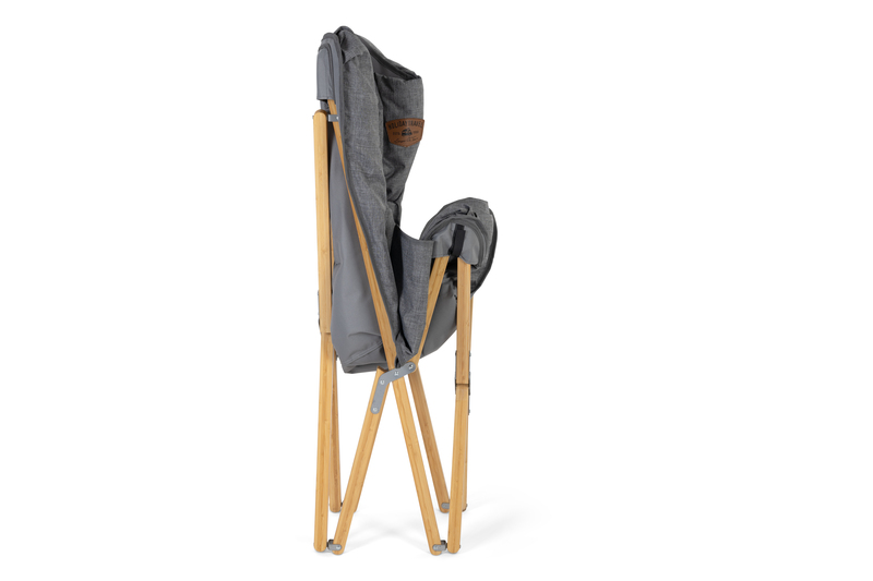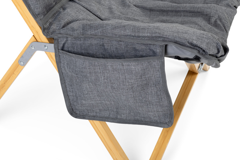 Șezlong pete gri cu material poliester tapitat (husă detașabilă), cadrul este din bambus.